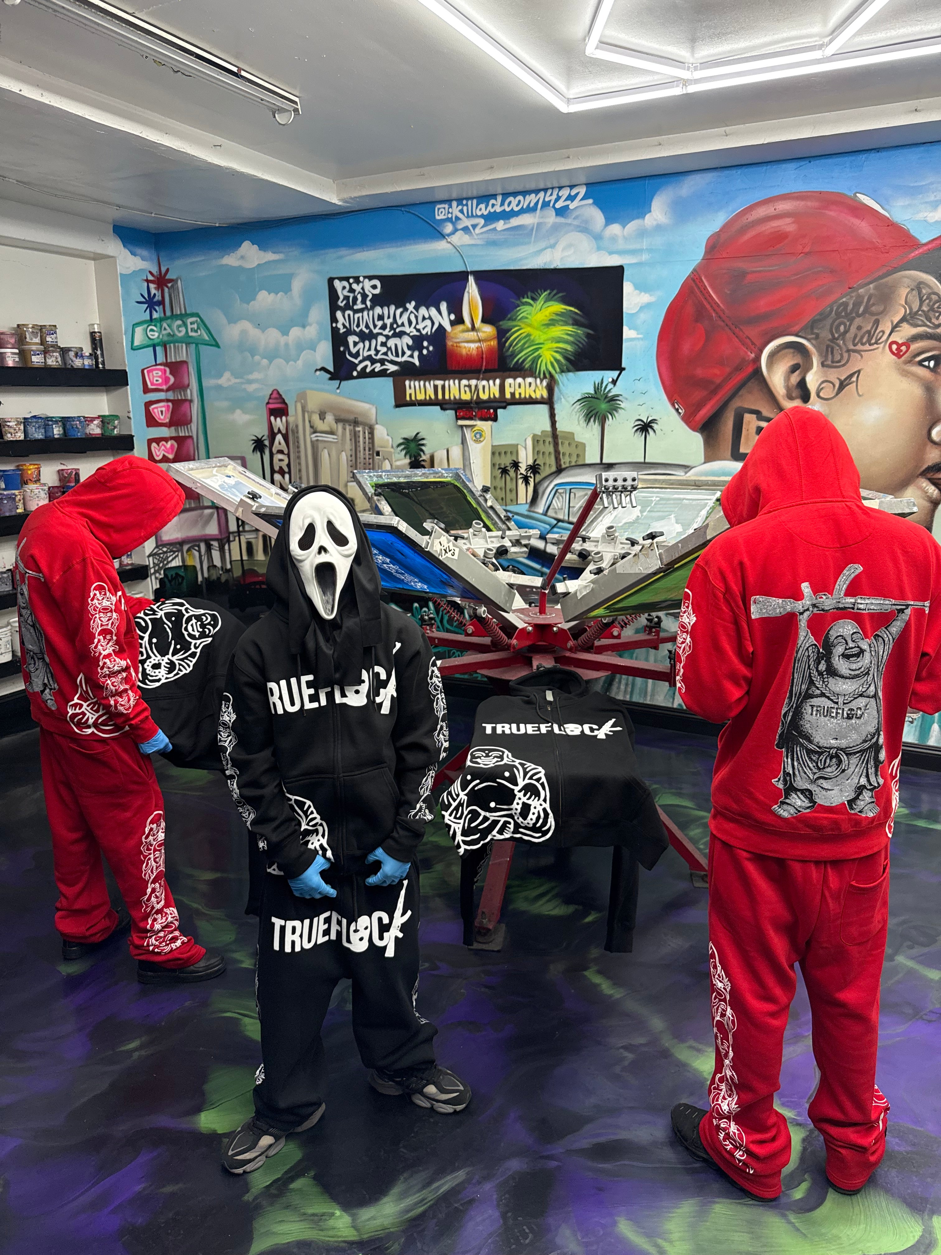 Red-Trueflock Buddha sweats